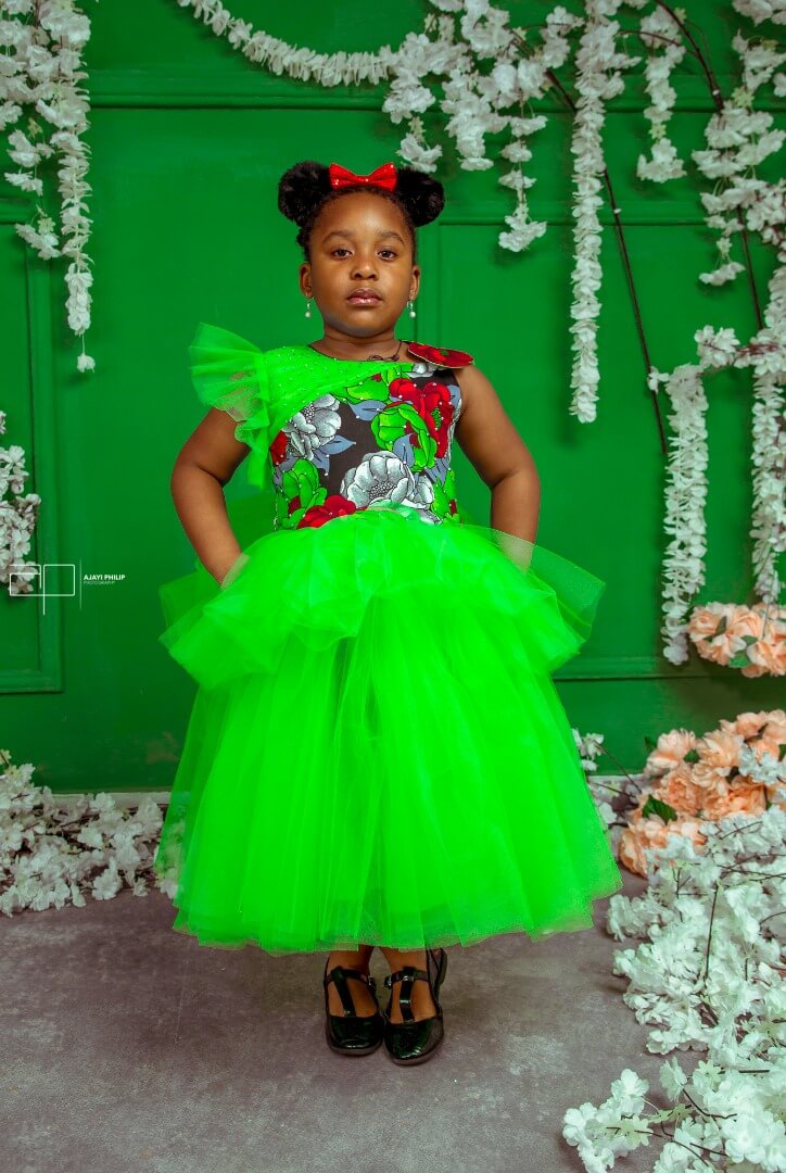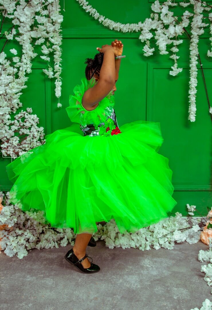 GREEN ANKARA DRESS WITH ONE SLEEVE