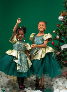 Our metallic gold and green damask dress is a delight for events that stands her out. It is accessorised with Swarovski details . … Get her piece today.